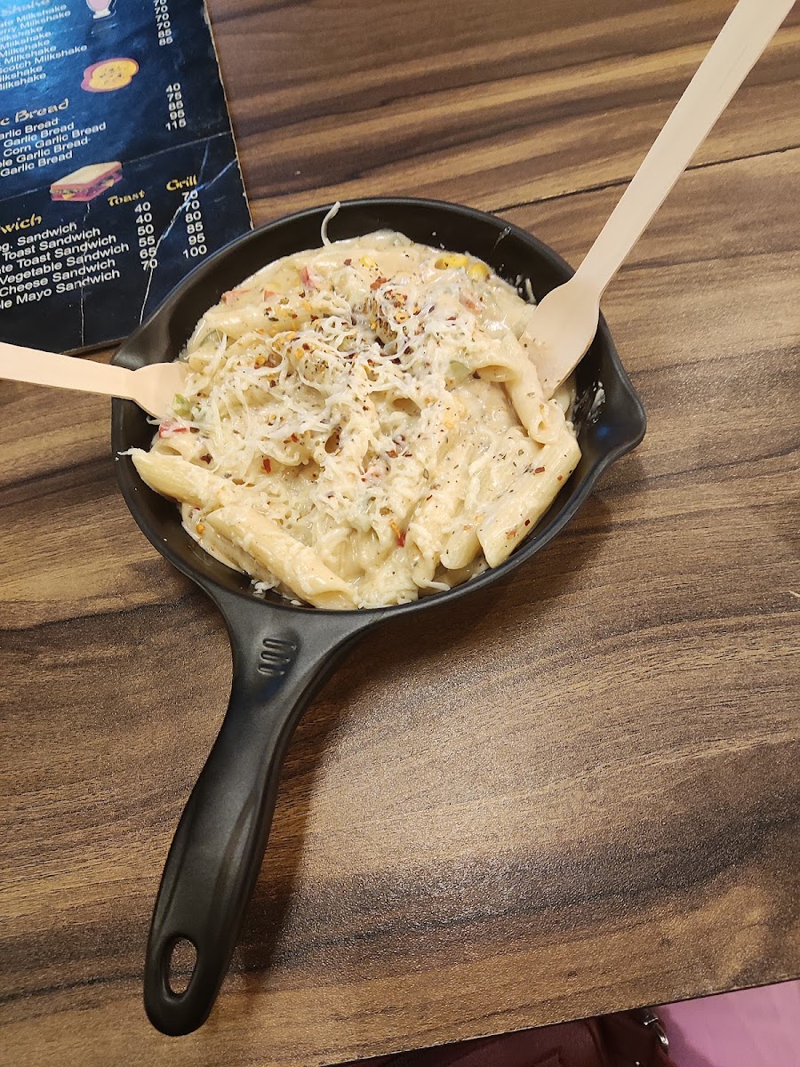 Veg. Pasta + Garlic Bread + Cold Coffee + Cheese Burger